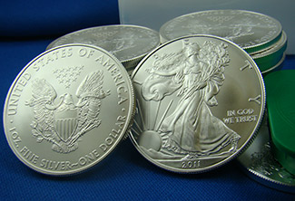 issued by the United States Mint. Official Legal Tender Unlike cheap silver medallions or reproductions you may see elsewhere, these American Eagles are "Official Legal Tender" guaranteed by the U.S. government as to weight, silver content, and face value. Largest U.S. Silver Dollar By law, each American Eagle Silver Dollar coin contains one full troy ounce of pure silver. All coins in this release are in Gem Mint Condition with beautiful mint luster and magnificent eye appeal. |